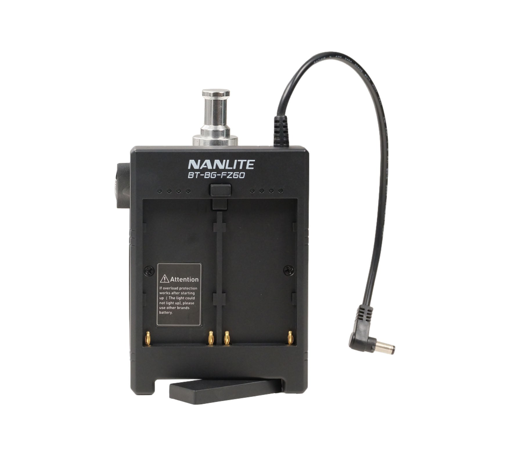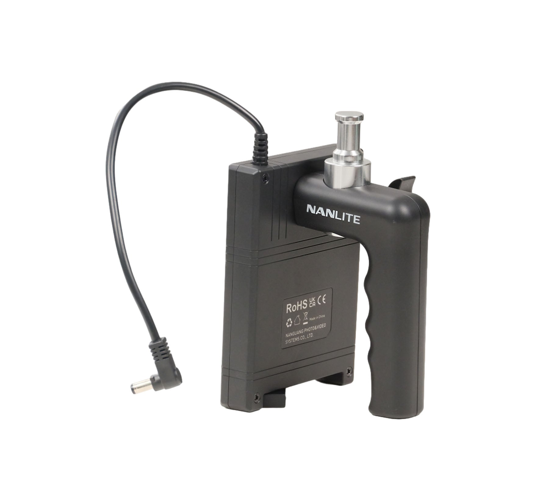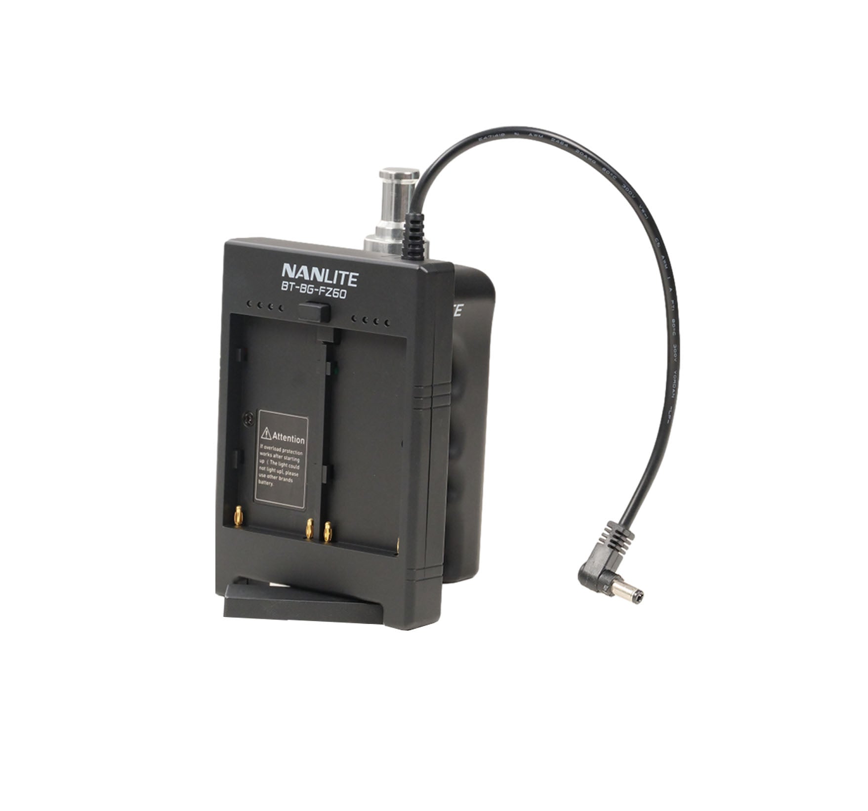 The Nanlite Battery Grip (BT-BG-FZ60) is an ergonomic handle accessory that accepts two Sony NP-F type batteries to power compatible Nanlite Forza 60-series LED lights in the field. It enables handheld use, freeing you from AC power constraints, and is an improvement over the original design with side-by-side battery plates for better stability.