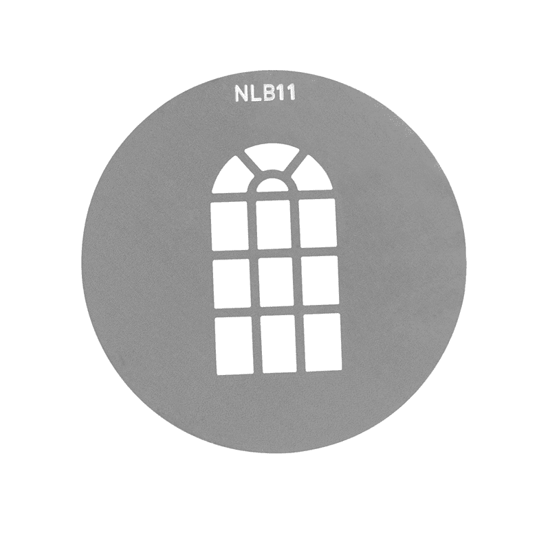 The Nanlite BM Bowens Projection Attachment Gobo Set 1 includes a versatile selection of 10 gobo discs designed specifically for use with the PJ-BM Projection Attachment. This set features three distinct window designs—arched, double, and angled—along with a variety of creative patterns such as linear arrays and textured breakups. These gobos are ideal for producing dramatic backgrounds, realistic shadows, reflections, and a wide range of artistic lighting effects.