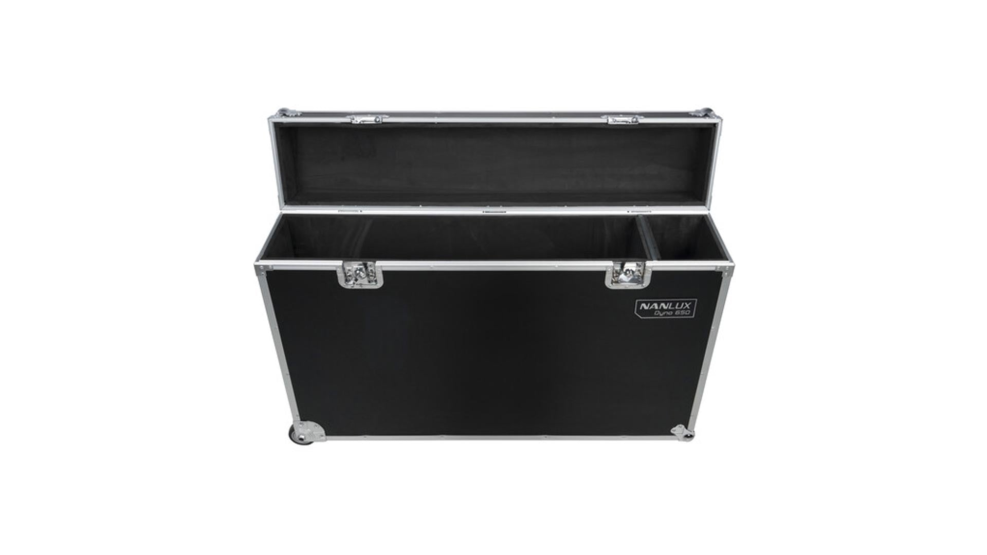 The dedicated flight case for the Nanlux Dyno 650C is the Nanlux Dyno Rolling Flight Case for 650C LED Panel Light (CC-FT-650C), an ATA-300 style hard case with a padded interior for maximum protection during transport.