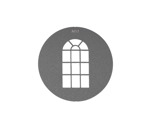 The Nanlite M-Size Gobo Set 1 includes 10 precision-cut gobo discs compatible with M-Size gobo holders. The collection features three distinct window designs—arched, double, and angled—along with practical pattern breakups such as linear arrays and textured shapes.