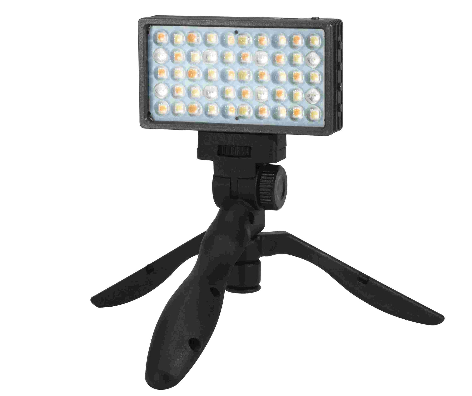A compact, versatile support accessory that functions both as a mini tabletop tripod and a handheld grip for LED fixtures with a 1/4″-20 mount — ideal for positioning small lights like tubes and other accessories in photography and video setups.