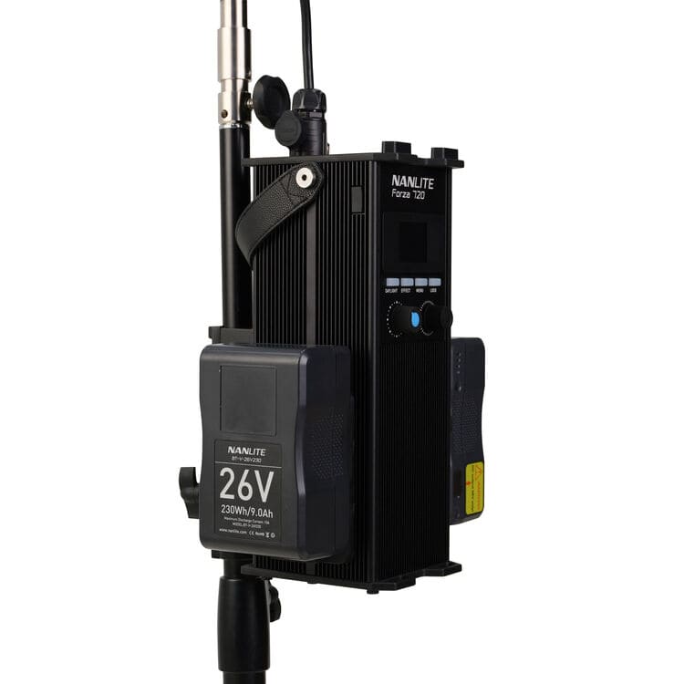 The Nanlite Forza 720 Daylight LED Monolight is engineered for studio-quality lighting on the move, delivering HMI-level performance in a lighter, more compact, and heat-efficient design. It supports AC/DC dual power with 14.8V and 26V battery compatibility through an advanced power management system, allowing reliable shooting in any location. A durable 5 m connection cable is included for flexible setups and higher light mounting.