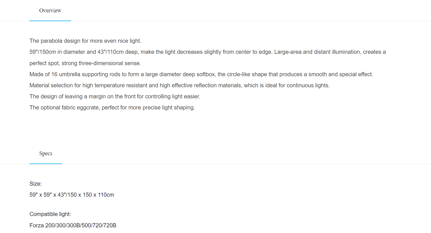 • Large 150 cm Parabolic Shape: Produces smooth, flattering, wrap-around light for portrait and studio work.