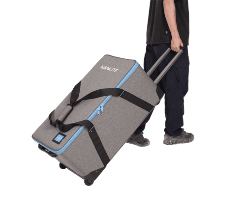 A rolling padded trolley case specifically designed to store, organize, and transport the complete Nanlite PavoSlim 60B or 60C 3-light kit, keeping your panels, stands, cables, and accessories secure and ready for both studio and location work. Perfect for professionals who value protection and mobility.
